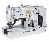 针杆在摆针及针位控制机构作用下,确定机针刺入针板孔的不同位置。在送料机构的配合下完成钮孔缝制。无论左、右横列和前后套结,它们都是以针板切刀槽为中心左右合理分布的(压脚也是如此),定位时先确定摆针横列宽度后再分别进行左基线、右基线、套结宽度。其要求是:以针板切刀槽为中心,左横列右针落针点略偏左,右横列左针落针点略偏右,套结宽度控制在左横列左针和右横列右针位置以内,相关部位的调整和定位,可参照使用说明书进行。此外,机针下降和摆针落点位都不得与针板孔相碰擦,不得与压脚相碰擦,都应留有不小于0.5mm的安全距离。